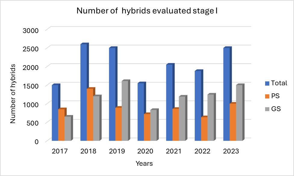 Doubled haploid technology speeds up the creation of inbred lines by producing entirely uniform lines. Pedigree line development is a traditional method in plant breeding aimed at gradually improving and stabilizing the genetic makeup of the new variety over time. It involves multiple generations of controlled crosses between parent plants with known characteristics. Each subsequent generation is carefully selected based on specific traits of interest, such as yield, disease resistance, or quality. Pedigree line development is expensive, particularly when nurseries are in remote locations.