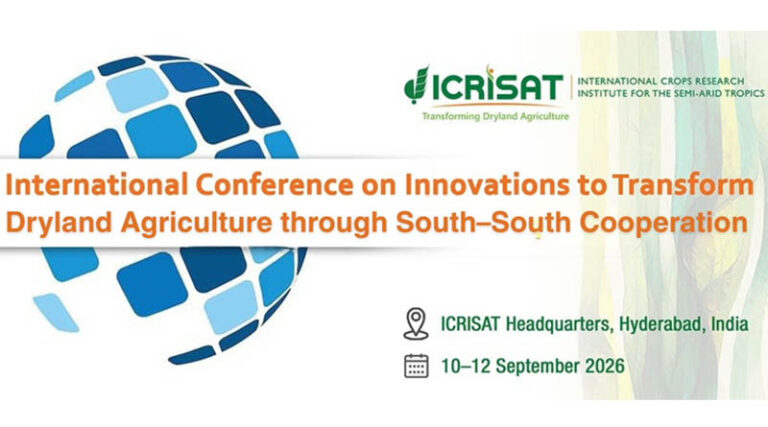 25 December 2025, Hyderabad: The International Crops Research Institute for the Semi-Arid Tropics (ICRISAT) today announced the International Conference on Innovations to Transform Dryland Agriculture through South–South Cooperation, to be held 10–12 September 2026 at ICRISAT Headquarters in Patancheru, Telangana, India. The conference will bring together leaders from the Global South and beyond to advance practical, science-based and partnership-driven agri solutions for dryland food systems.