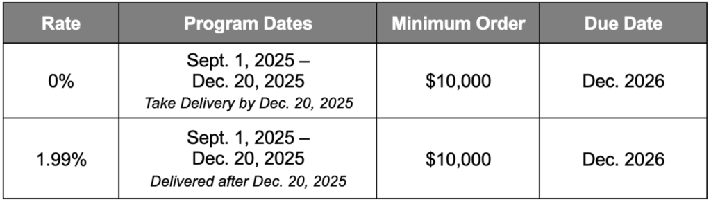 To take advantage of the 0% offer, the grower must set up a Farm Growth Financial account and take delivery of product by Dec. 20, 2025. Payment is then due in December 2026. For product delivery after Dec. 20, 2025, there is a 1.99% offer available through crop year 2026. Visit https://meristemag.com/FGF/ to enroll and for terms and conditions.