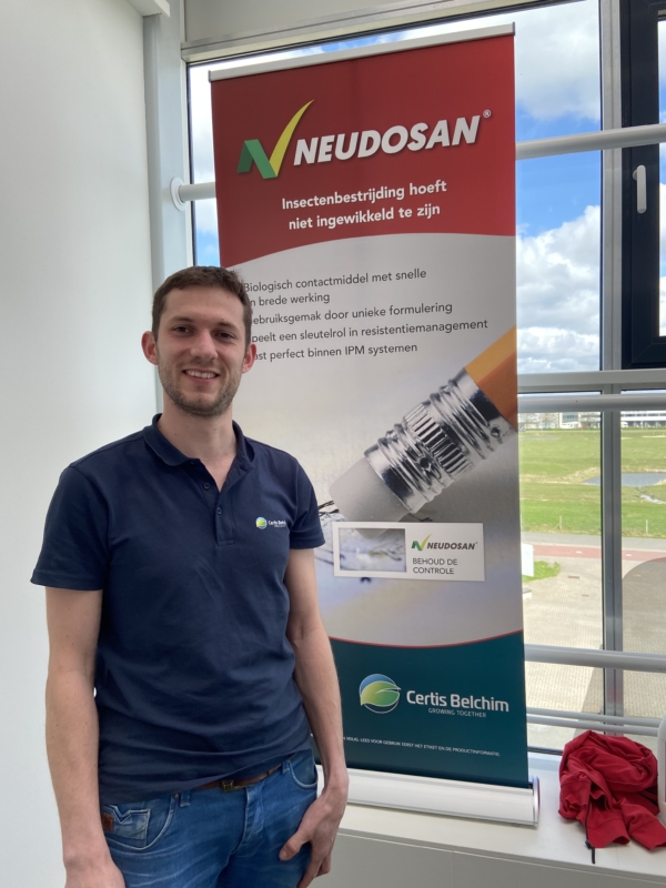 The new insecticide was presented to advisers and representatives of horticultural suppliers in April by Aron Boerefijn. He explained the details of the product, answered questions and guided visitors through the trials in the Certis Belchim Innovation Center, which is located within the World Horti Center in Naaldwijk.“Our resellers’ advisors are cautious by nature, but the first reactions were definitely positive,” says the Technical Account Manager. “Of course, we hope that Neudosan will quickly find a place in practice, because after the warm welcome it will have to live up to their expectations. In the meantime, we are working on the further expansion of the label. We are pleased with the current broad approvals, but some important crops are still missing. For greenhouse horticulture, these are mainly strawberries and soft fruit.”