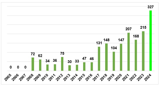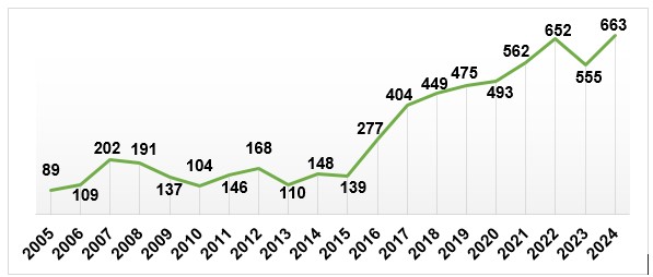 Notably, the number of approved registrations has increased significantly, especially since 2017, when it reached 400 registration approval’s level for the first time.