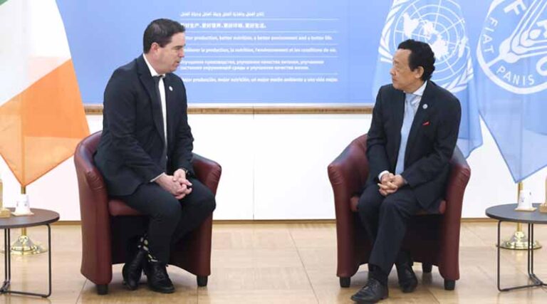 The pair discussed the upcoming Second FAO Global Conference on Sustainable Livestock Transformation due to take place from 29 September to 1 October 2025 at FAO headquarters, and the Director-General commended Ireland on the science and evidence-based approach to the transformation of agrifood systems and, in particular, to sustainable livestock farming. The Minister reaffirmed Ireland’s commitment in this regard, as well as the need to communicate well to the public and consumers on the transformations that farmers continue to undertake to incorporate the latest science and technology to produce nutritious and sustainable food.