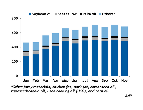 03 January 2024, Brazil: Brazil’s decision to accelerate the national biodiesel blending mandate will contribute to higher feedstock costs, as unfavorable weather threatens a slump in the soybean crop and as exports of beef tallow surge.