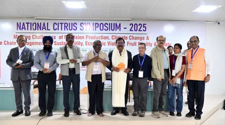 23 December 2025, Jalgaon: India’s citrus sector is emerging as a strong growth engine for farmers, particularly as domestic processing capacity expands and export opportunities increase. To fully realise this potential, closer coordination is required among policymakers, private institutions, research bodies and academia, with a sharp focus on orchard health, certified planting material and modern production practices. This was emphasised by Dr N. K. Krishnakumar, former Director General of Horticulture, while addressing scientists and stakeholders at the valedictory session of the National Citrus Symposium 2025.