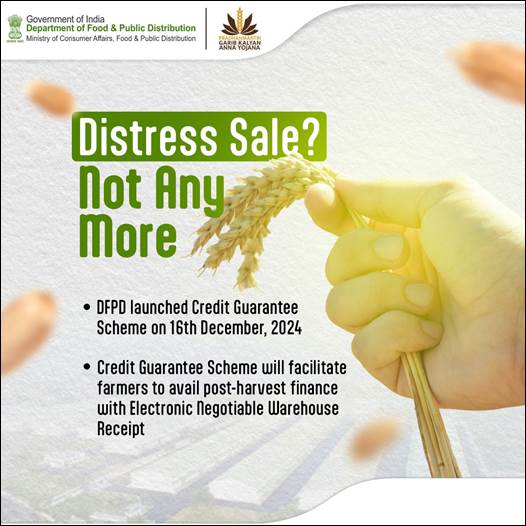 Credit Guarantee Scheme for e-NWR Based Pledge Financing (CGS-NPF): The Government of India launched the Credit Guarantee Scheme for e-NWR Based Pledge Financing (CGS-NPF) on 16 December 2024, providing a ₹1,000-crore corpus to support post-harvest financing for farmers. Under this scheme, farmers can access credit by pledging their produce stored in Warehousing Development and Regulatory Authority (WDRA) accredited warehouses, backed by electronic negotiable warehouse receipts (e-NWRs).