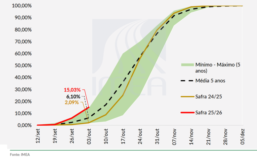 Below is the soybean planting pace in Mato Gross for October 3, 2025 from Imea.