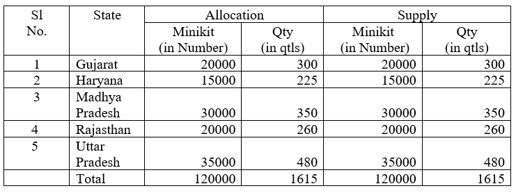 Hybrid Mustard seed mini kits have been distributed to major Mustard growing States, such as Rajasthan, Madhya Pradesh, Uttar Pradesh, Haryana and Gujarat. The state of Andhra Pradesh has not been included for this pilot project since the climatic conditions in the state are not suitable for this crop.